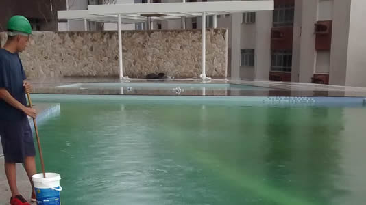Esse serviço consiste em visitas semanais para tratamento químico da água no qual fazemos todas as medições e administramos os produtos químicos necessários para manter a água da piscina livre de micro-organismos e bactérias também nessas visitas são feitas as escovações e aspirações necessárias para manter a piscina sem resíduos. Procuramos manter a água em totais condições de uso com o minimo gasto de produto possível contando sempre com equipamento filtrante em bom estado de funcionamento.